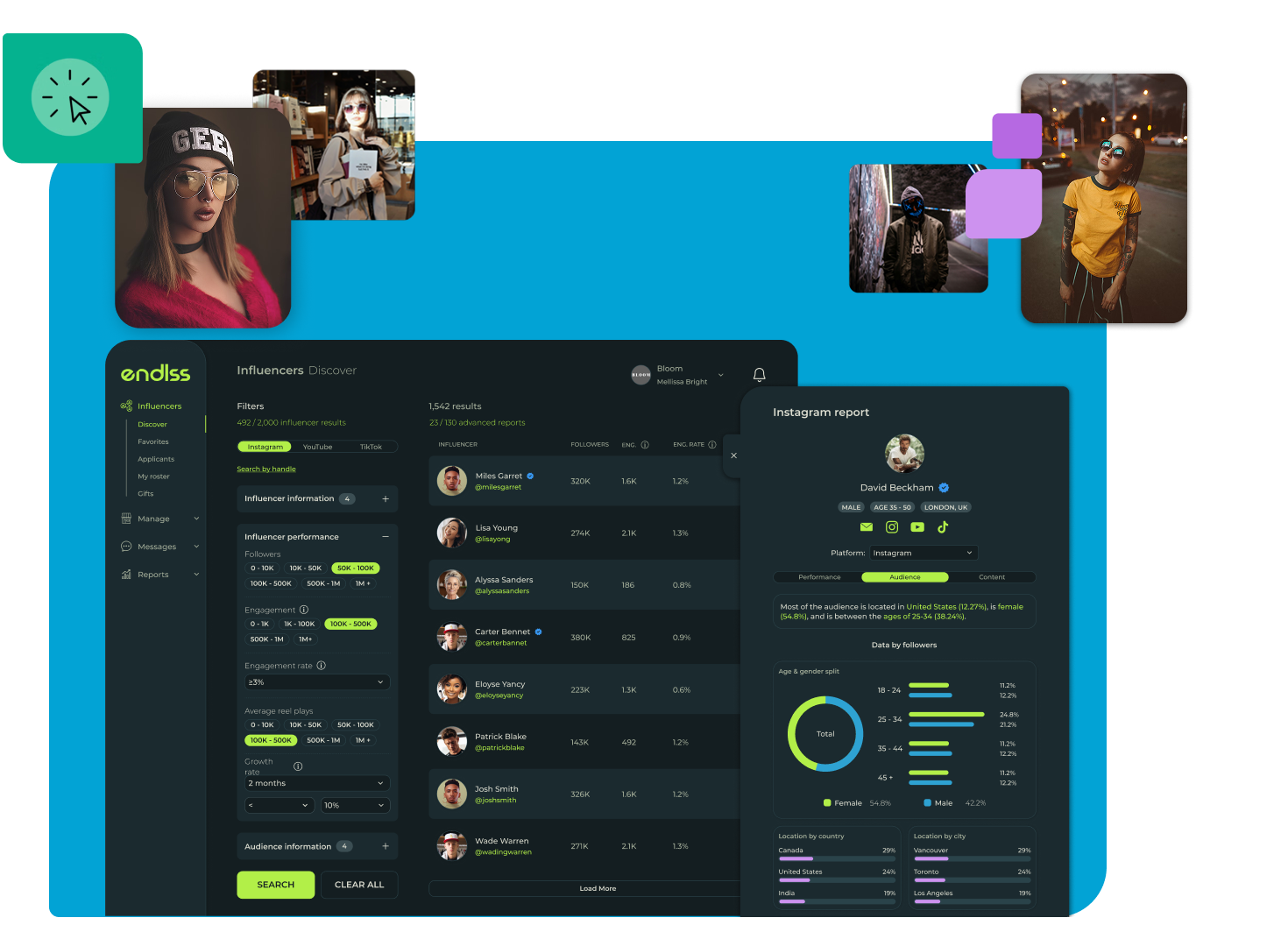 Endlss separates performers from vanity profiles by surfacing real performance signals. Every profile includes historical data and engagement metrics (not just follower counts) before you reach out, allowing operators to evaluate potential signal early.